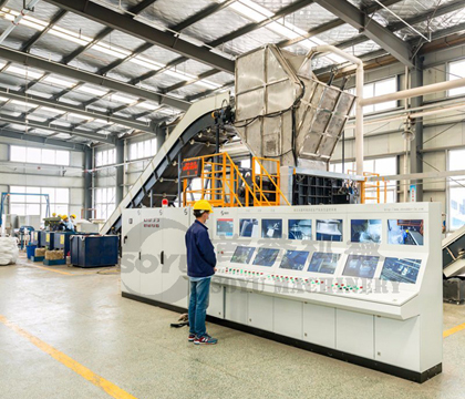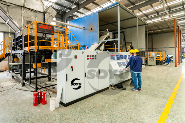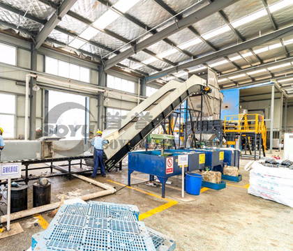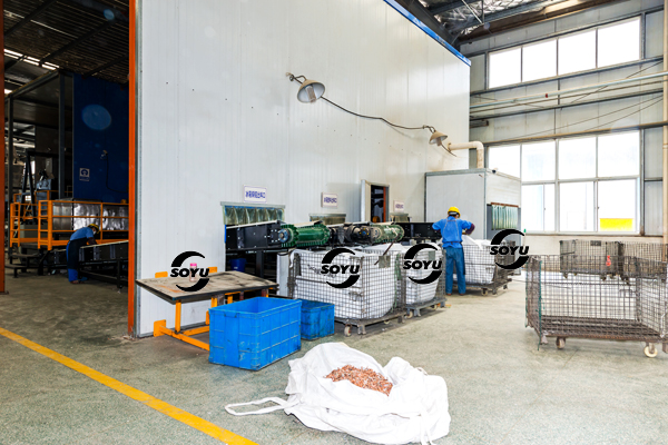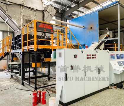 a.本機用于破碎拆解廢舊冰箱等家電的。f.本系統全程PLC控制,動態實時監控。具有能耗低、處理量大、經濟性好、維護成本低、處量效果好等特點。
