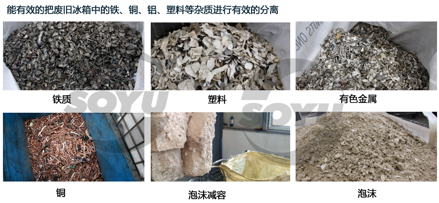 1、 本冰箱拆解設備能夠將廢舊冰箱中的鐵、銅、鋁、塑料等雜質進行有效的分離。