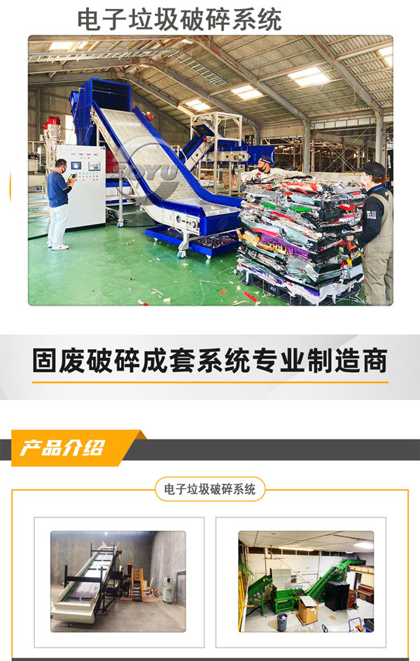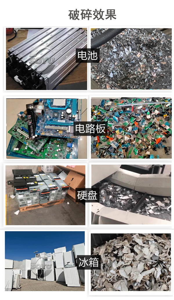 電子廢棄物的破碎處理是運用各組分之間物理性質差異進行分選的方法,包括拆卸、破碎、分選等步驟,分選處理后的物質再經過后續處理可分別獲得金屬、塑料、玻璃等再生原料。這種處理方法具有成本低,操作簡單,不易造成二次污染,易實現規模化等優勢,是各國開發的熱點。