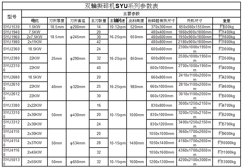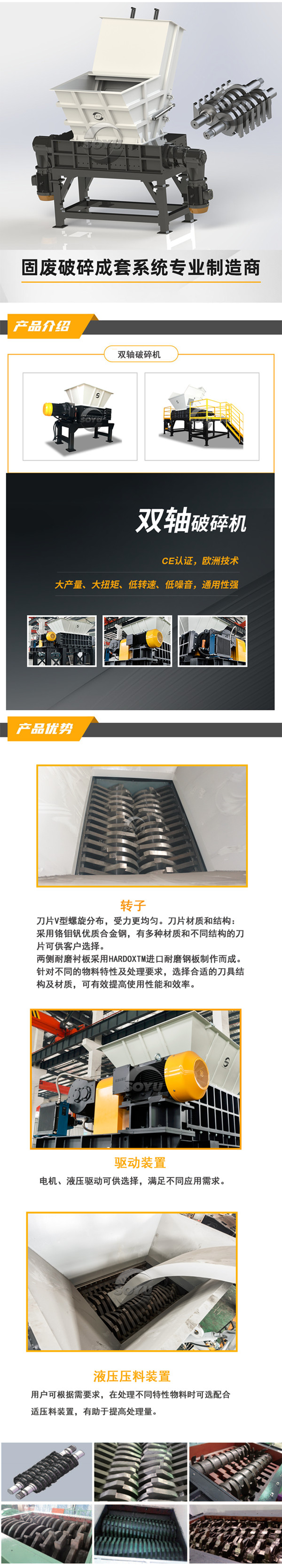 • 雙軸撕碎機通過盟CE認證,整機技術來源于意大利,采用微電腦(PC)自動控制,設啟動、停止、反轉及超載自動反轉控制功能,具有低速、大轉矩、低噪音等特點,軸承座采用對開型式,拆裝換刀容易方便適合撕碎特大、特厚難碎物料.